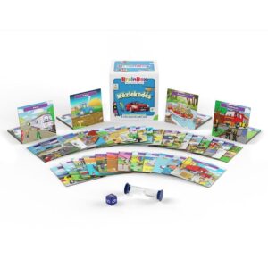 Tornáztassátok meg agytekervényeiteket a BrainBox: Első képeim társasjátékkal, mely 4 éves kortól ajánlott. A BrainBox dobozában 55 darab színes illusztrált képet találtok, melynek az egyik oldalán különböző ábrákat jelenít meg, mint például állatokat vagy tárgyakat, a másik oldalán pedig 6 kérdést sorolnak fel, aminek a válaszait a képes oldalról kell megjegyezzetek.