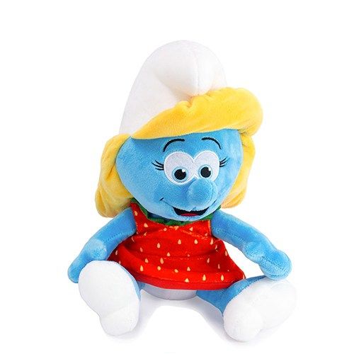 Hupikék törpikék: Ülő plüss Törpilla piros ruhában, 27 cm