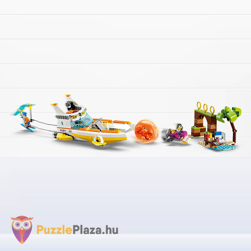 Kedvezz az ifjú kalandkedvelőknek és a videójáték-figurák 8+ éves rajongóinak a Tails kalandhajója (76997) építőszettel, egy szórakoztató gamer ajándékkal, amely telis-tele van funkciókkal és interaktív játéklehetőségekkel. Ez a LEGO® Sonic the Hedgehog gyűjthető játékkészlet tartalmaz egy hajót, beépített gyorsulógömbbel az elején, egy karaokegépet, egy táncparkettet, és siklóernyő-csatlakozót a hajó hátulján. Vidám játéklehetőségek a 4 figurával, egy szigetmodell 3 karikájával, egy boltívvel, egy tengerparti székkel, és még sok más kiegészítővel.