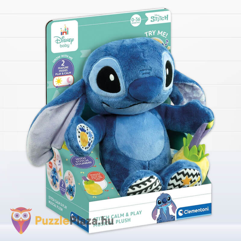 Csempészd be a Disney varázslatos világát a legkisebbek életébe az interaktív éneklő Stitch plüss figurával! Ez a pihe-puha Stitch nemcsak egy szeretnivaló ölelgetni való barát, hanem egy interaktív játék is. Kétféle módban szórakoztat: vidám Disney dallamokkal ösztönzi a mozgást, vagy édes altatókkal ringatja álomba a babát. Susogó fülei és a színes részletek felkeltik a kicsik érdeklődését, a levehető csörgő ananász pedig extra játéklehetőséget nyújt. 0-36 hónapos korig ajánlott, biztonságos anyagból készült, hogy hosszan tartó örömet okozzon.