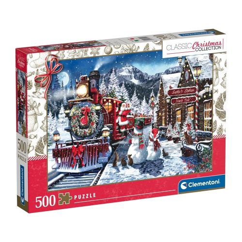 Mikulás és a karácsonyi vonat, 500 db-os puzzle (Clementoni Classic Christmas Collection, 81502). A kirakott kép mérete: 49×36 cm.