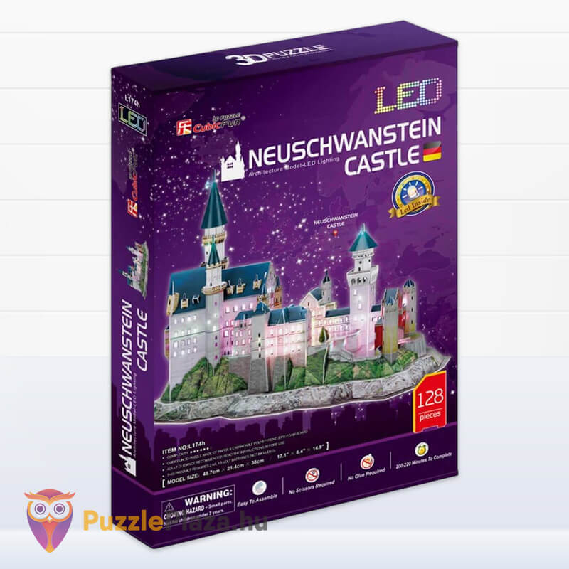 A Neuschwanstein kastély 3D puzzle LED világítással remek ajándék történelmet kedvelőknek, kirakó rajongóknak és minden kastélyrajongónak. Ha különleges CubicFun 3D puzzle szettet keresel, amely egyszerre nyújt kihívást és gyönyörű dekorációt, ez a készlet jó választás lesz.