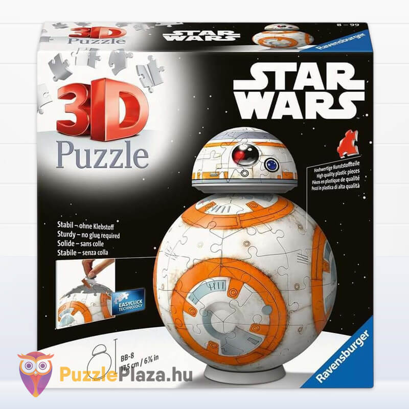 Fedezd fel a Star Wars univerzumban rejlő izgalmakat a Ravensburger 99 db-os 3D gömb puzzle-lel, amely a kedvenc kis androidodat, BB8-et ábrázolja!