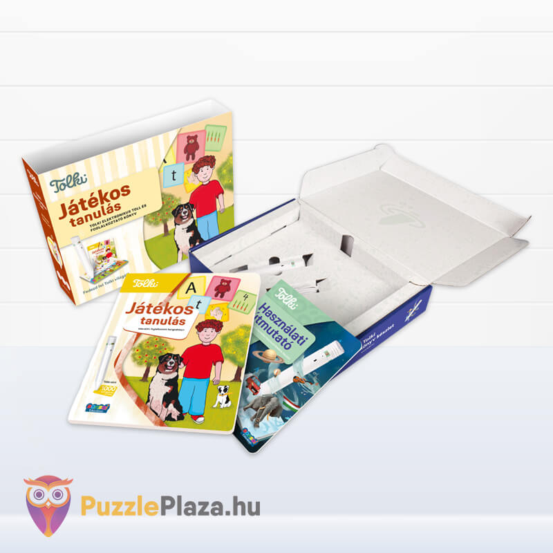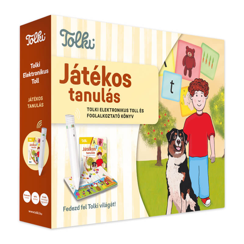 A Tolki interaktív foglalkoztató hangoskönyv és a Tolki toll segítségével a tanulás sosem volt még ennyire szórakoztató és könnyű a gyermekek számára. A kezdő szettben megtaláljátok a Játékos tanulás című könyvet, valamint az intelligens, hangszórókkal ellátott Tolki okos tollat is, amivel a gyermekek megtanulhatják az évszakok, magyar ABC, közlekedés, háziállatok vagy az öltözködés alapjait, melyet szaktanárok és gyermekpszichológusok segítségével állították össze.
